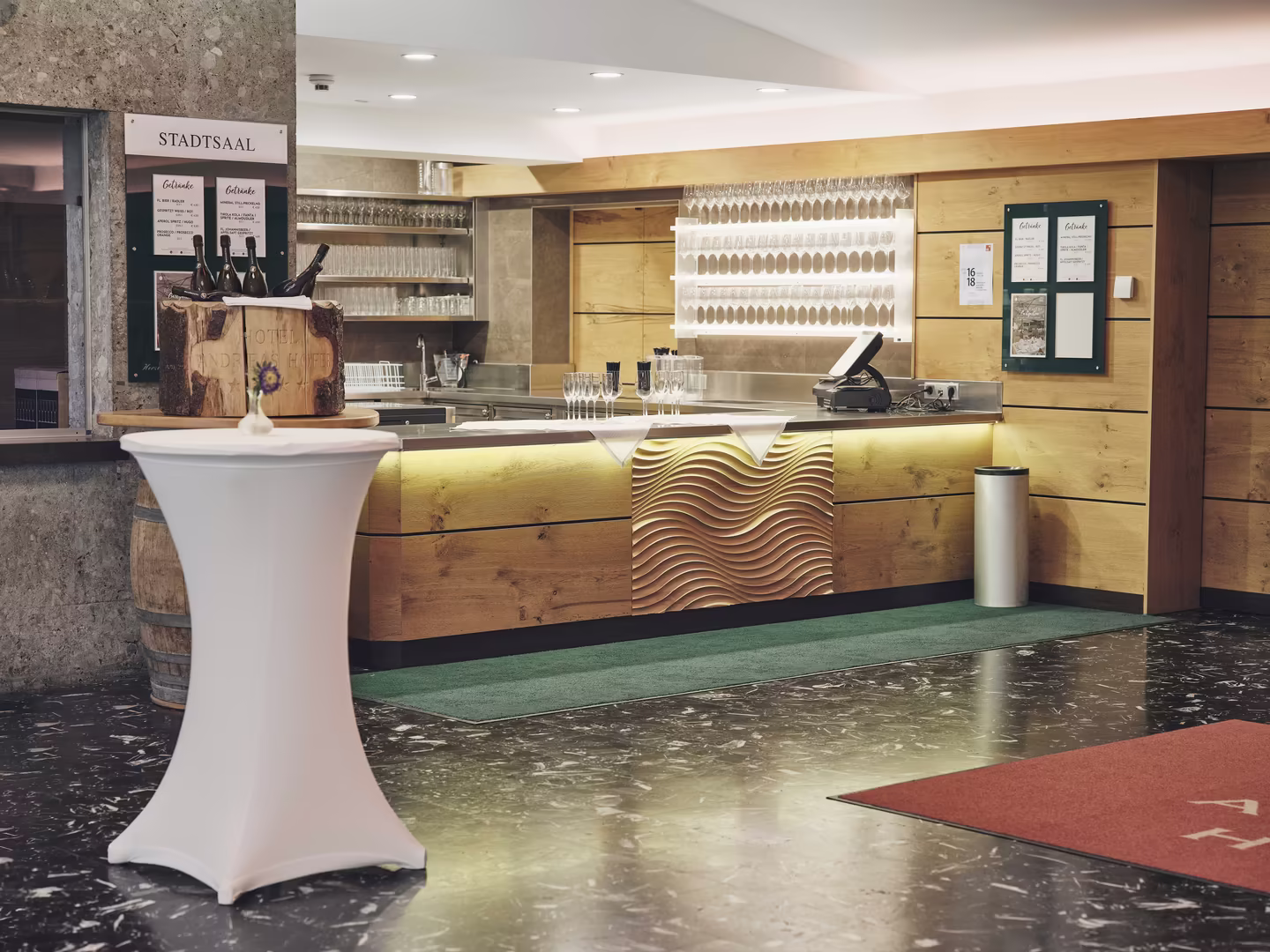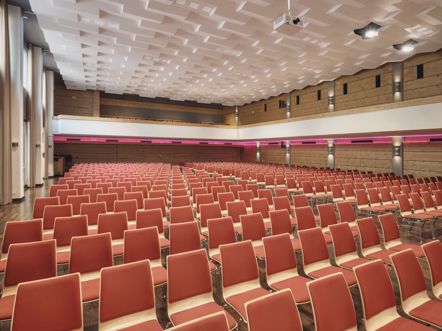 Unser 500 m² großer Saal bietet Platz für bis zu 800 Personen und ist ideal für Tagungen, Firmenfeiern, Konzerte und mehr.